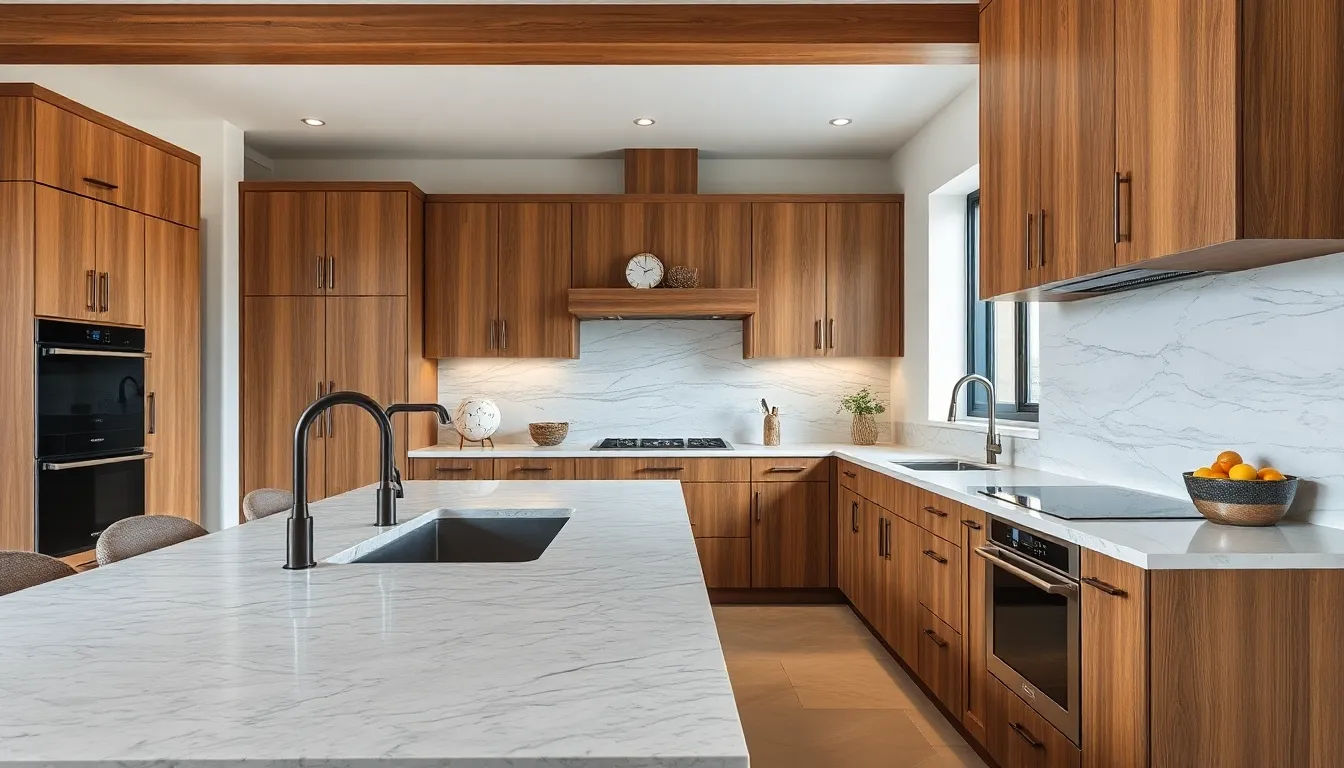 Minimalism dominates modern aesthetics, emphasizing clean lines and uncluttered spaces. Open layouts allow for easy movement, making the kitchen feel larger and more inviting. Neutral color palettes, like whites and grays, become popular choices, offering versatility in décor. Bold accents in hardware or fixtures provide unique touches that stand out against subtle backgrounds. Technology integration also shapes modern designs, with smart appliances enhancing convenience. Custom cabinetry often features sleek finishes, adding to the contemporary appeal. Homeowners favor innovative lighting solutions, such as pendant lights or recessed fixtures, illuminating key areas effectively.