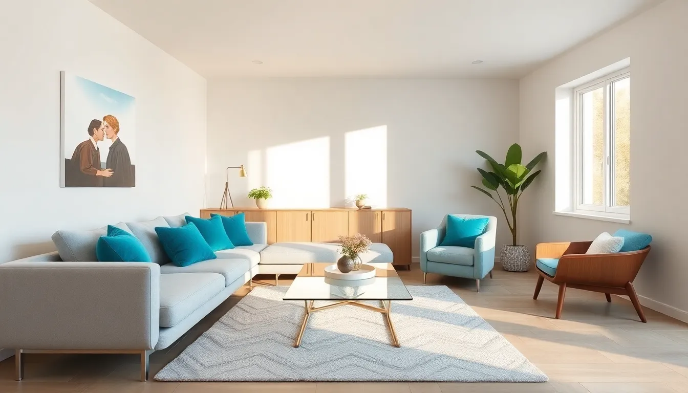 Modern living rooms emphasize aesthetics and functionality through various design elements. Key aspects include color schemes and furniture selection that cater to contemporary tastes.